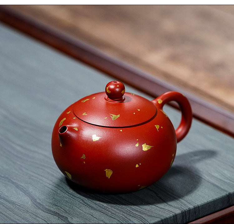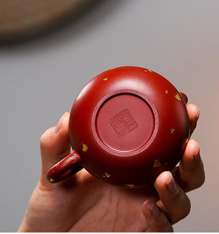 Real specs of gold paint dance across the Da Hong Pao clay, turning each pot into a unique work of art. This isn't your grandma's teapot—unless she's a queen, then maybe. 👑